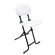 ShopSol innovative design provides the comfort of sitting even when standing. Ideal for use in Lab, front office, reception, back office and service desk work environments. Tools free seat height adjustment sets user at desired height within seconds. Compact design allows the stool to be folded for storage. Industrial grade vinyl seat and back is wipe-friendly. Heavy gauge tubular steel provides superior strength and durability.