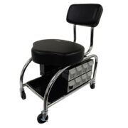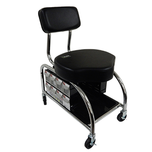 ShopSol Heavy Duty (450lb capacity) stool is designed for mechanic and shop applications that require low height work tasks that allow user to be ergonomically positioned with back lumbar support. Includes (16) Flip-Out Storage Bins, plus 3.5″ thick vinyl seat and dual back bar backrest.